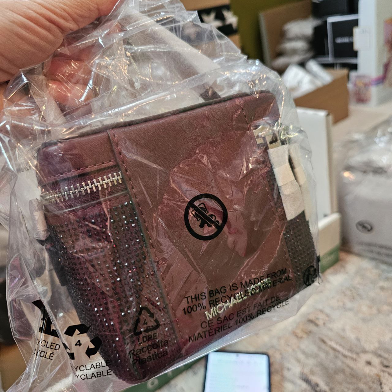 Be the first to review “(INTERNAL USE ONLY) LD DEC 13 (CLEARANCE) MK TRUNK CROSSBODY MAROON BLING”