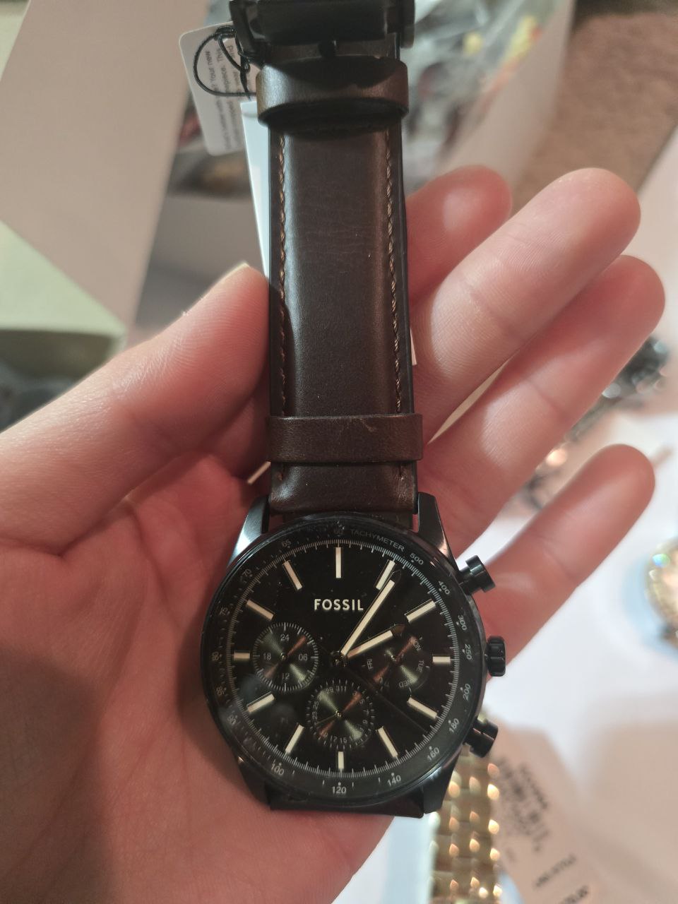 (INTERNAL USE ONLY) LD JAN 22 FOSSIL MEN DARK BROWN MUKA HITAM BQ2457