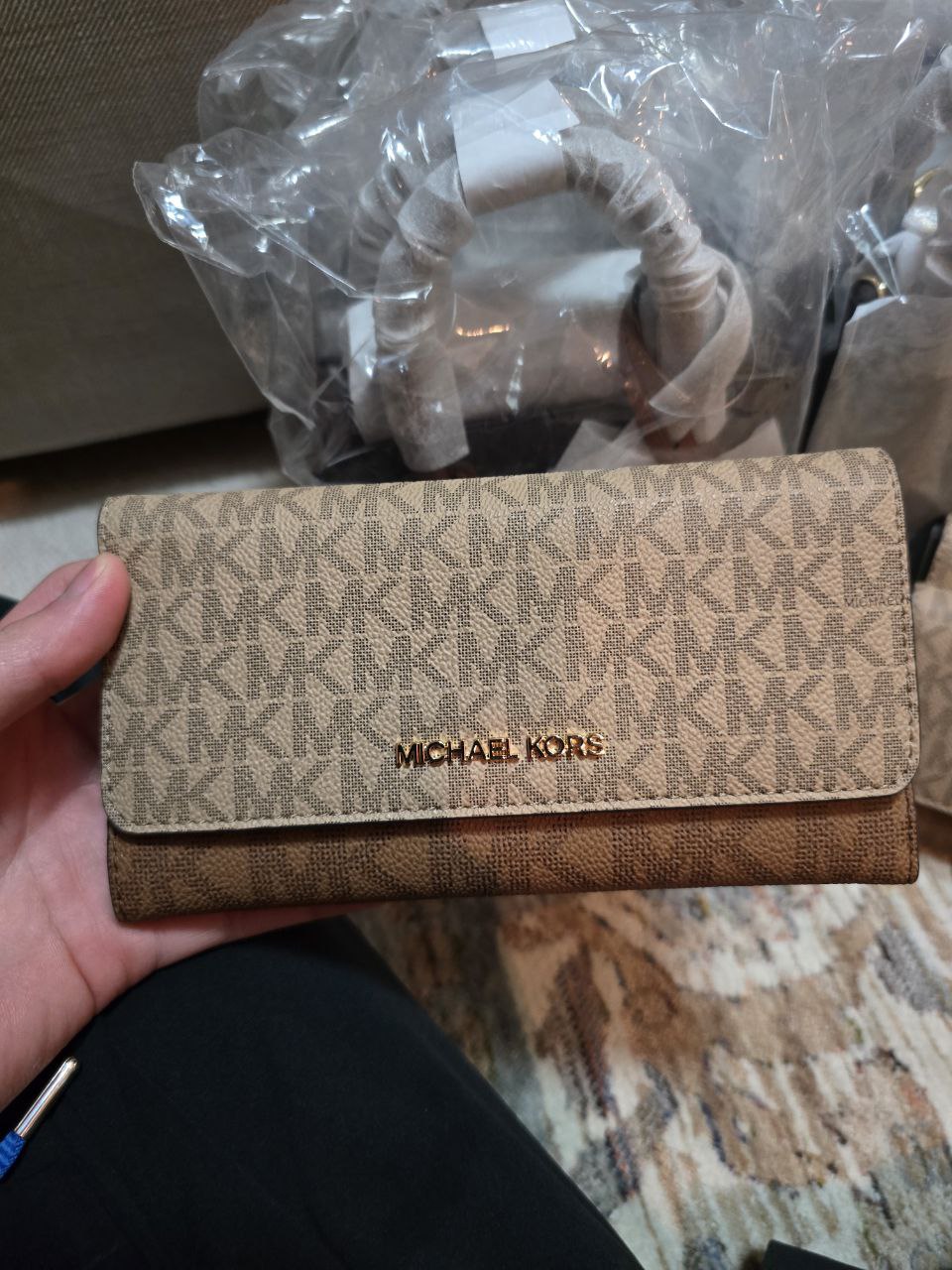 (INTERNAL USE ONLY) LD MAY 10 MK SLIM TRIFOLD WALLET SIGN CAMEL