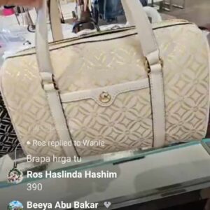 (INTERNAL USE ONLY) LD JAN 20 [CLEARANCE] MK MEDIUM DUFFLE JACQUARD VANILA/GOLD (GAJAH PUTIH)